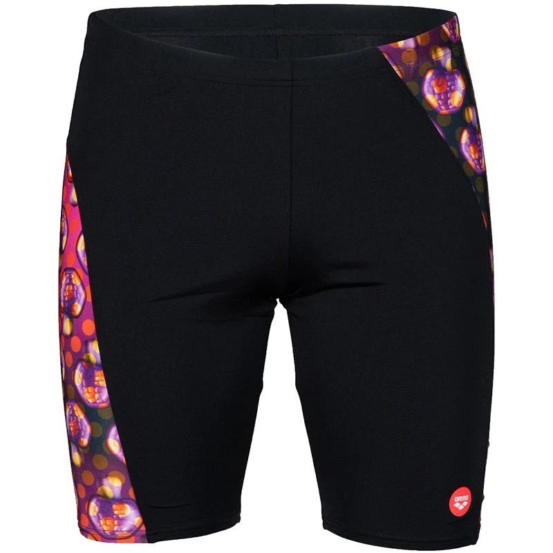 Inspired by Mexican traditions, our Crazy Jammers are printed with neon calaveras and flowers that really pop against the black background. Designed for the long haul of competitive training and intensive swim sessions, team them with an arena swim cap and goggles.